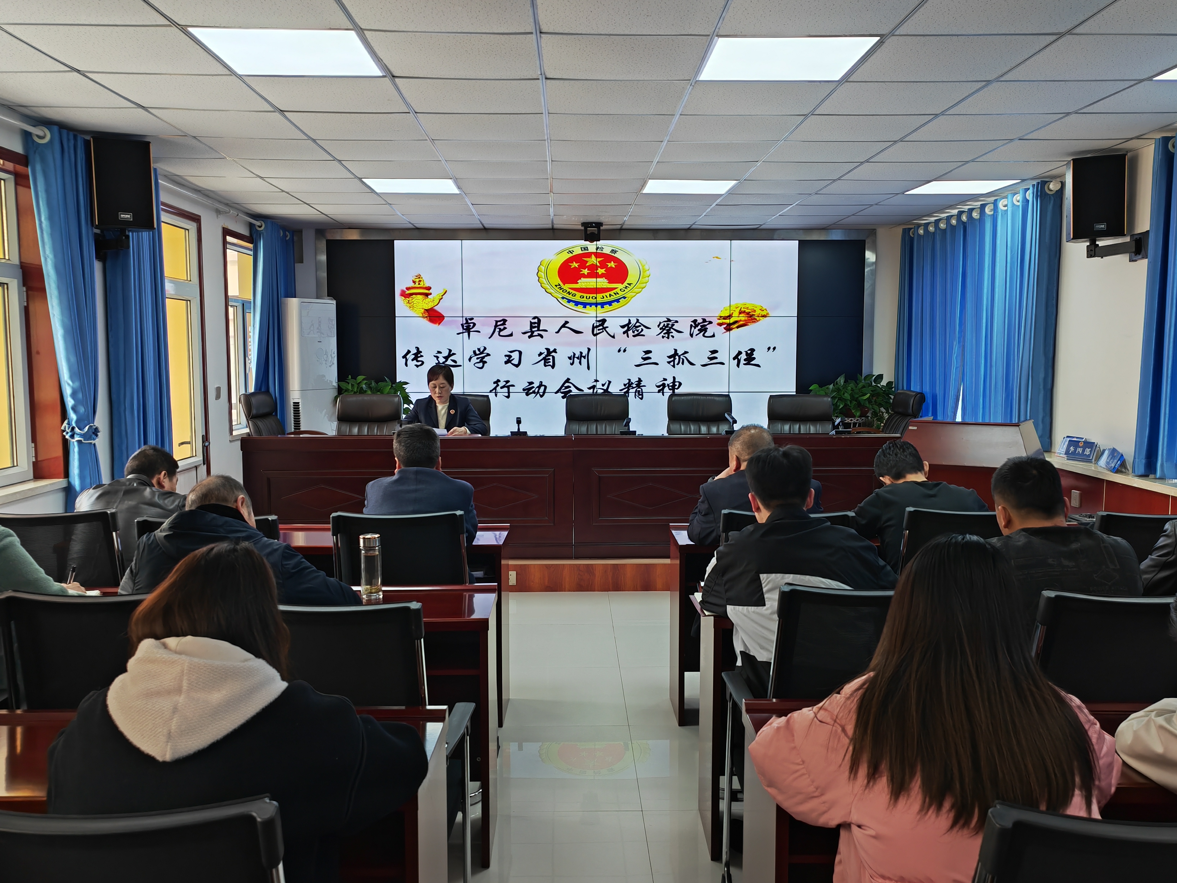 2月22日,卓尼县人民检察院党组成员、副检察长段喜明主持召开专题会议,传达学习省州“三抓三促”行动会议精神,全体干警参加了会议。